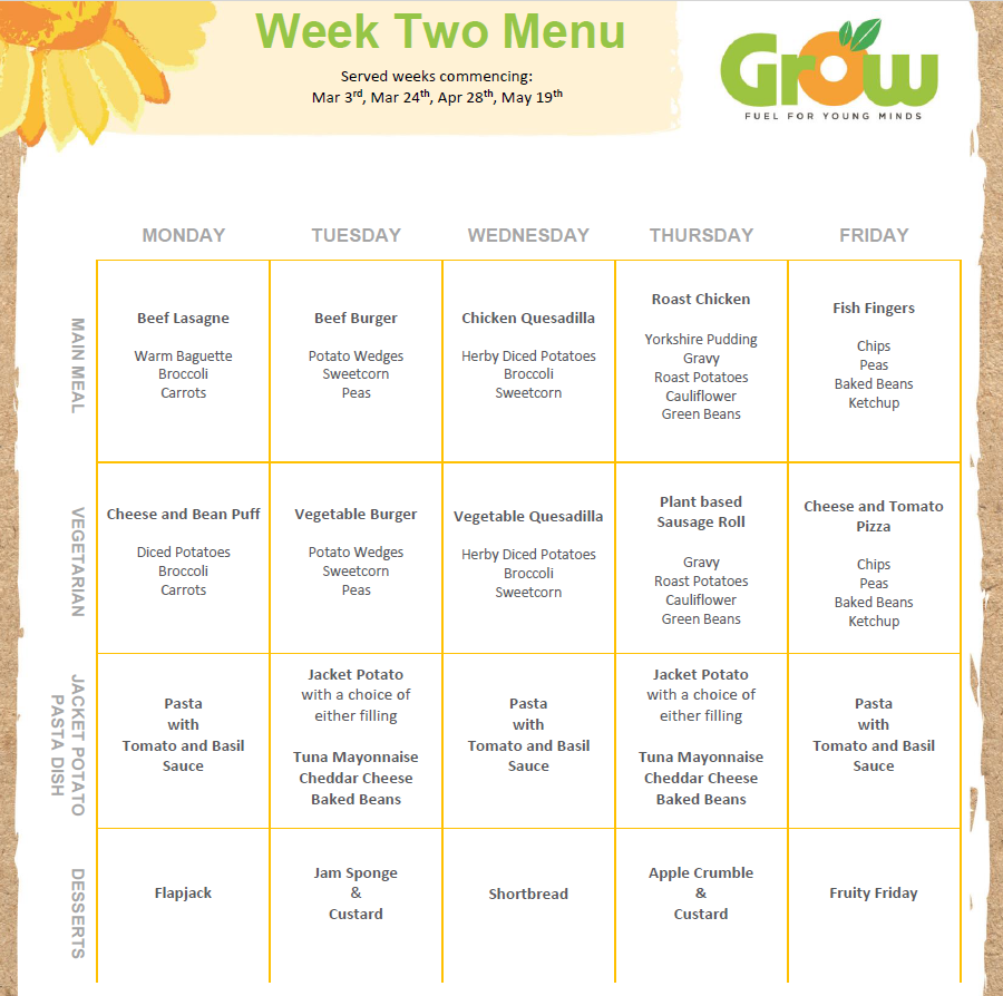 School Dinner Menus